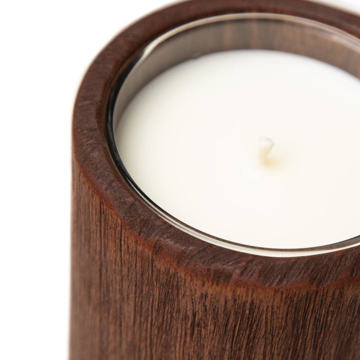 Vela artesanal inspirada en la elegancia oriental con acabado rústico caoba, trabajada individualmente en Galicia.